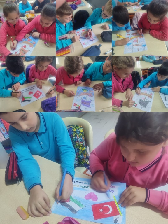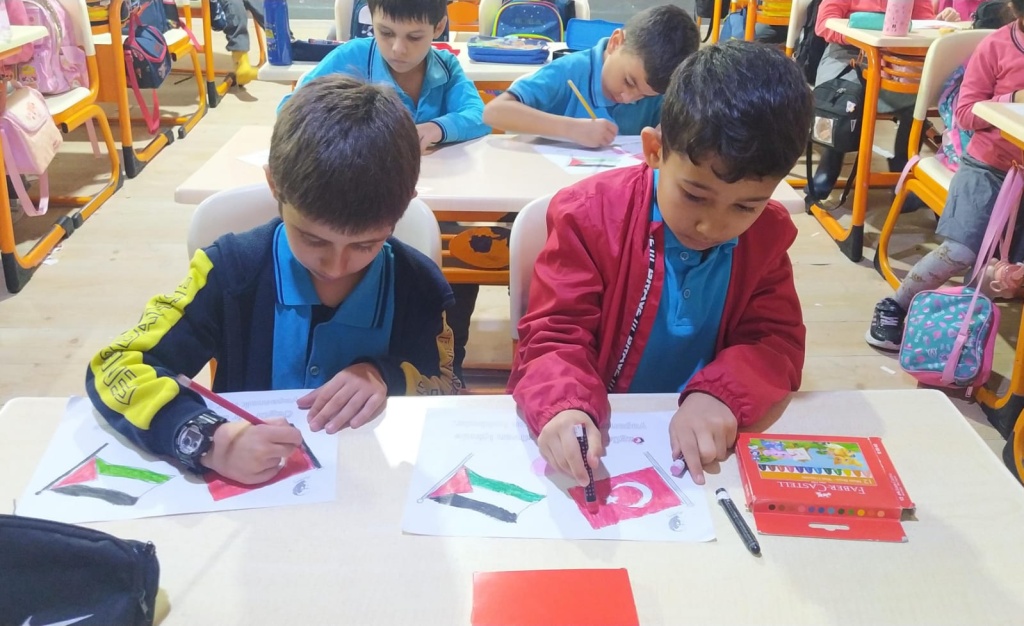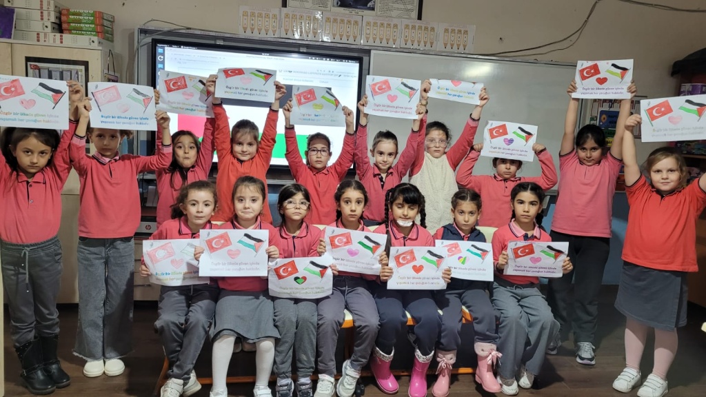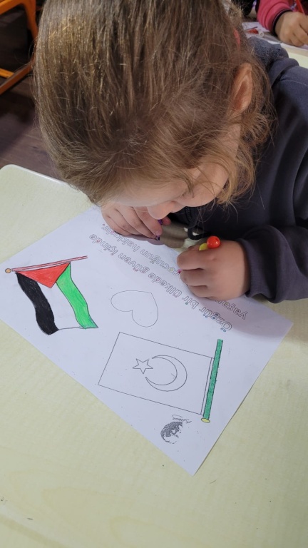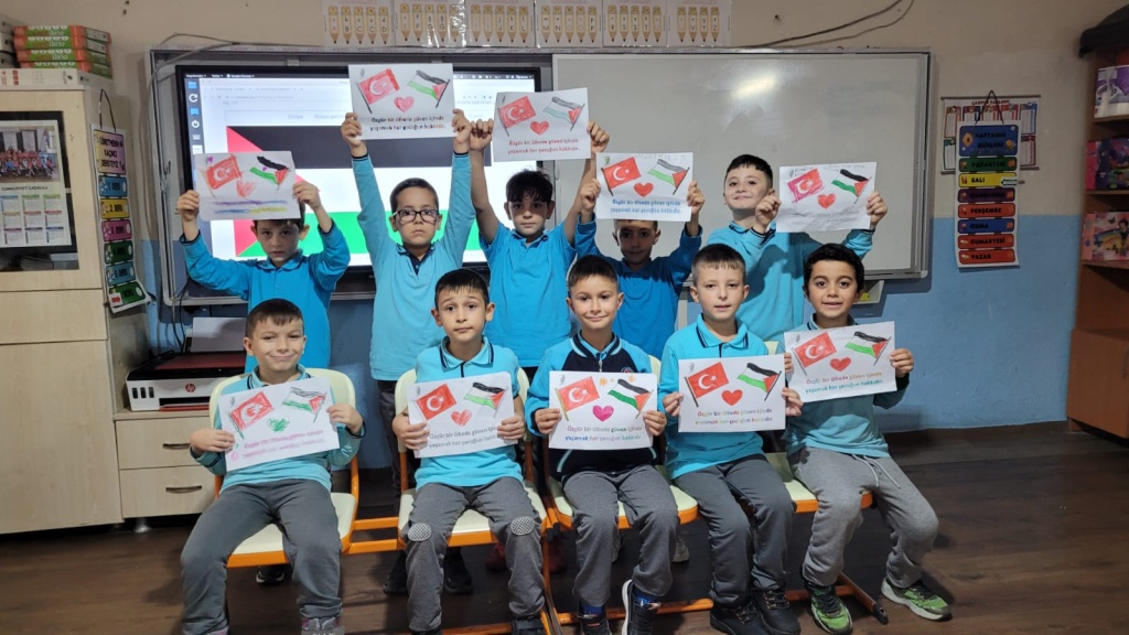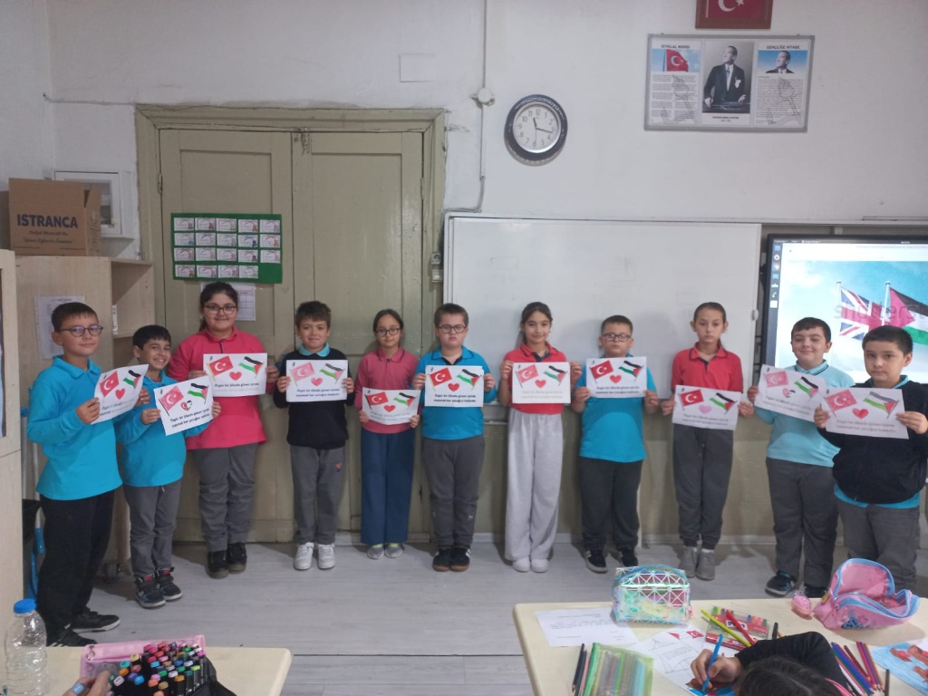 Okulumuzda düzenlenen Filistin Farkındalık Etkinlikleri kapsamında öğrencilerimiz, Filistin’de yaşanan duruma dikkat çekmek ve barışın önemini vurgulamak amacıyla çeşitli çalışmalar gerçekleştirdi.